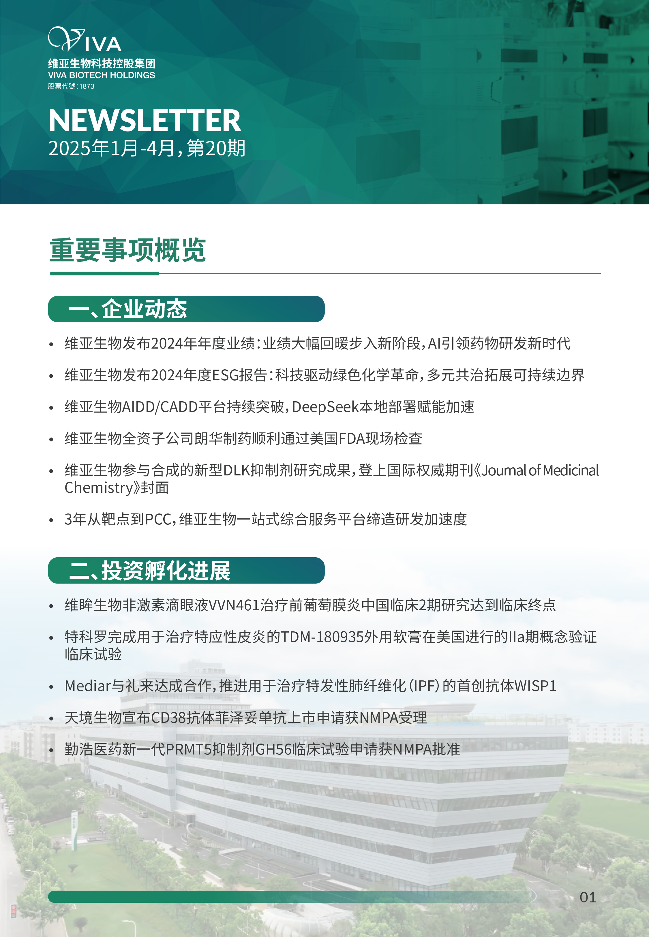 亚星游戏官网生物(1873.HK)企业通讯第二十期(2025年1月-4月)