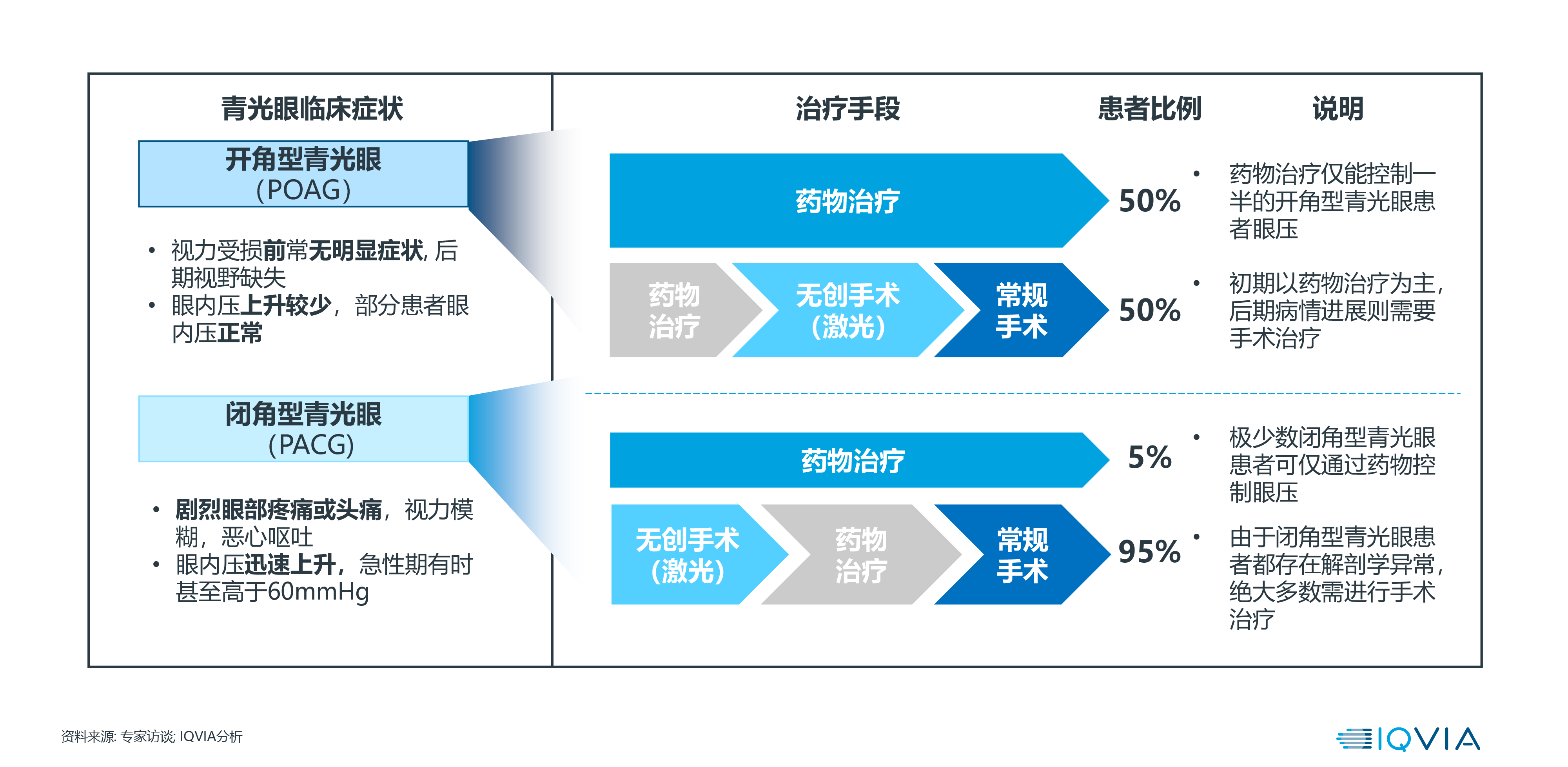 中国开角型青光眼约占青光眼总数的一半。中国近视人口比例正在快速上升,尤其是高度近视者患者群体的扩大也会直接影响着中国开角型青光眼发病率升高。近年来国家高度重视眼健康工作,“十四五”全国眼健康规划进一步强调对致盲性疾病的关注,倡导青光眼的早发现、早诊断、早治疗,并制定诊疗规范,降低致盲率。随着经济社会发展及人口老龄化进程加剧,人民群众对眼健康有了更高需求,中国青光眼用药市场也会随之快速扩增。