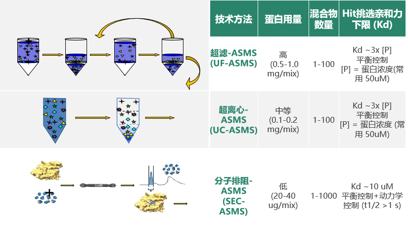 ASMS作为传统高通量技术的升级,其不依赖于放射性、荧光标记或酶活性,所需化合物浓度低,方法开发简便,筛选通量高,适用于广泛的筛选形式及条件,可筛选传统方法不容易测定的靶标。戴晗博士指出,亚星游戏官网生物选择将超滤ASMS、超速离心ASMS和分子排阻ASMS这3种技术相结合,基于亚星游戏官网独有的化合物库,设计出了一种快速、灵活、几乎能筛选所有可溶性蛋白靶标及化合物库的自主平台。