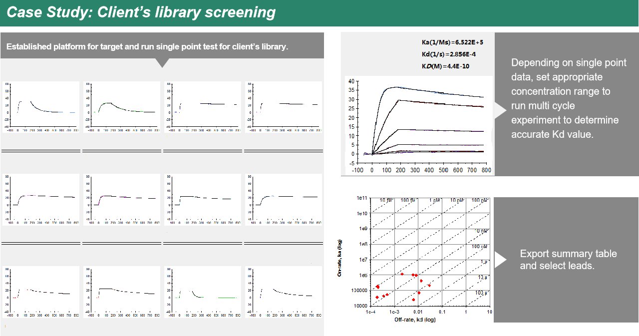 通用亚星游戏官网自有的Biacore平台,对客户提供的化合物库进行从单点到多浓度的筛选。