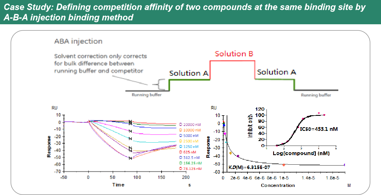 通过A-B-A Injection模型检测两个化合物在不同结合位点的结合。